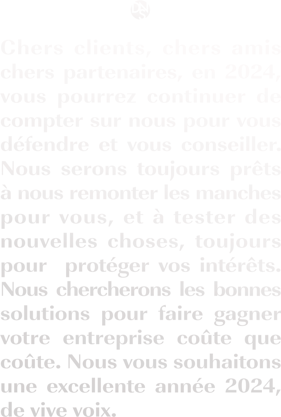 En tant qu’avocats, nous utilisons notre voix au quotidien. En 2024, nous continuerons à l’utiliser pour défendre et conseiller haut et fort les chefs d’entreprise. C’est pourquoi nous avions à coeur de plaider nos voeux, de vive voix.
